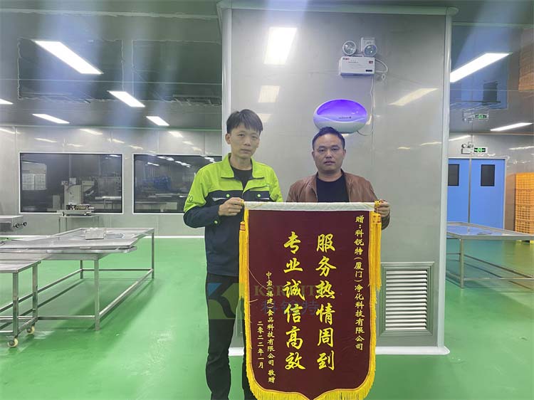 魏俊強經理也代表科銳特對中寶食品贈送錦旗表示衷心感謝,這是對科銳特在凈化工程發展上的高度榮譽,更是一種新的使命。同時也祝中寶食品蓬勃發展,日勝一日。(凈化工程)
